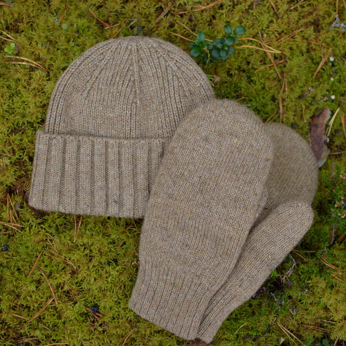Geschenkset: Suomenlampaa-Wollmütze und Fäustlinge.
